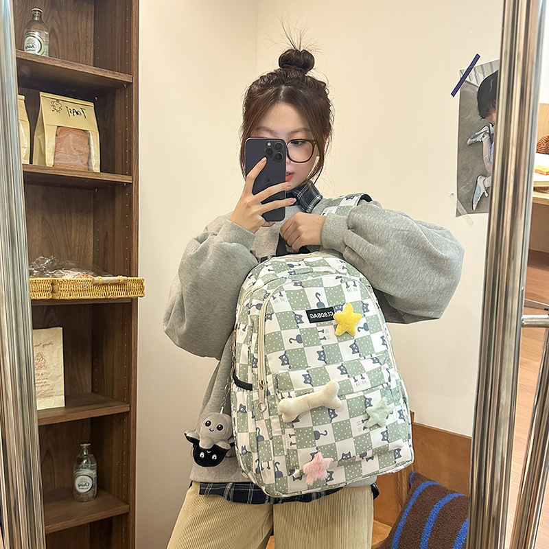 かわいい格子の猫とキャンプのナイロンのかばんの新型のランドセルの大容量のカバンの中高生のリュックサックの旅行カバン