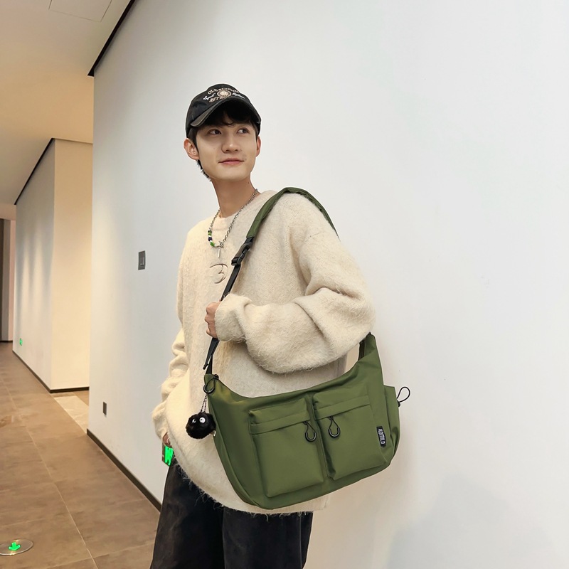 キャンバスショルダーバッグ工装バッグ女性餃子バッグ黒機能大容量カジュアルショルダーバッグ男性バッグ
