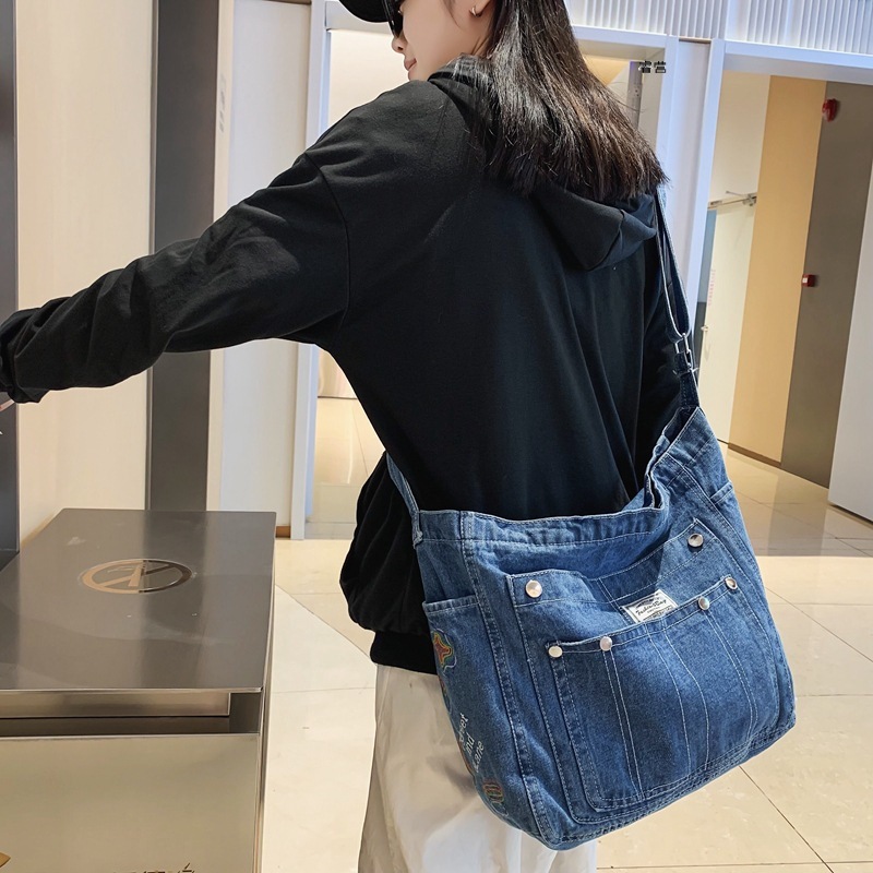 韓国版はレトロなデニムの女性カバンを合わせています。