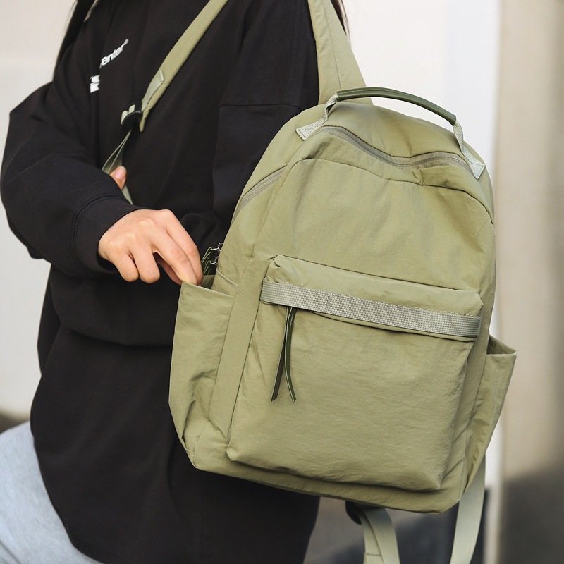韓国系純色のしわのランドセルの女子大学生の大容量の軽いレジャー旅行のリュックサックの中高生のカバン