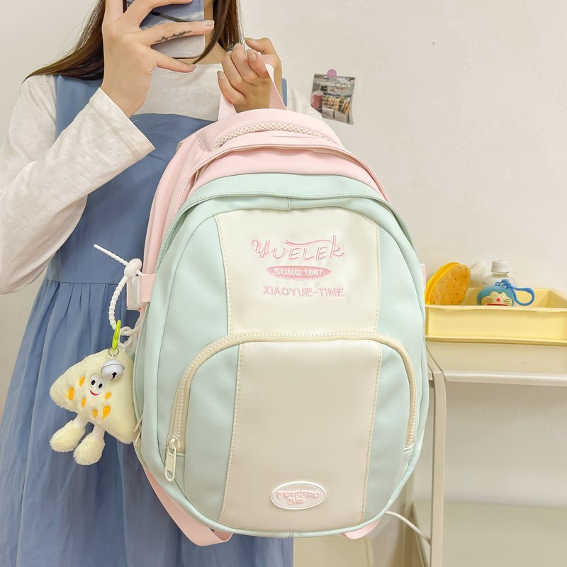 高颜値かばん女子大学生韓国版ファッション衝突色中学生バックパック大容量高校生ランドセル潮