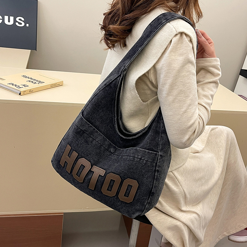 冬の新型デニムのカバンの女性のレジャーとキャンプの簡単な文芸のキャンバスのショルダーバッグのアルファベットの香港風のわきの下の特のカバン