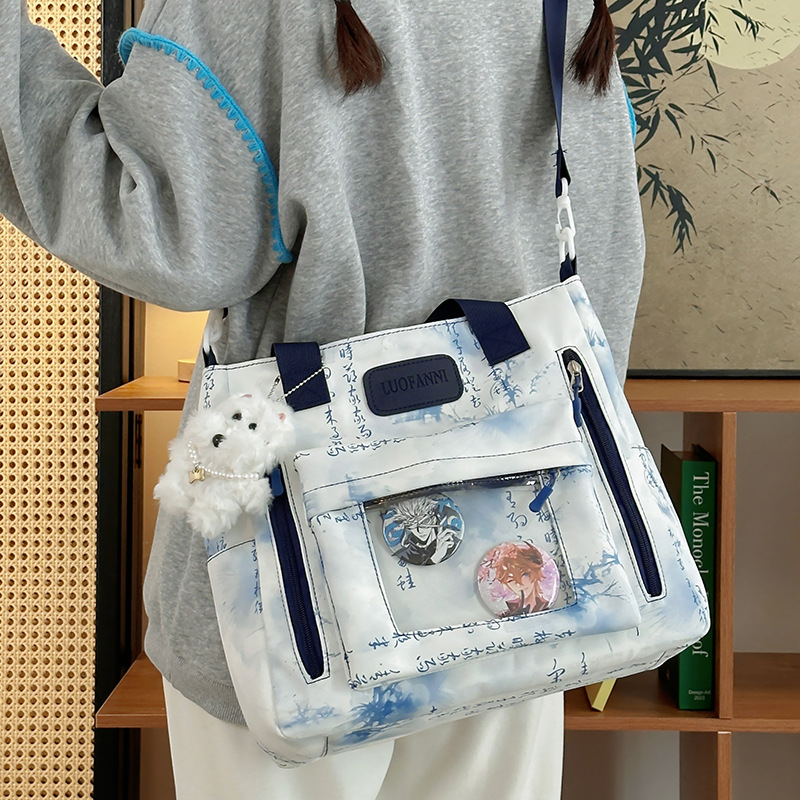 新型ショルダーバッグ国潮風小中学生授業収納バッグ新中国式文芸風透明とキャンプ斜めショルダーバッグ