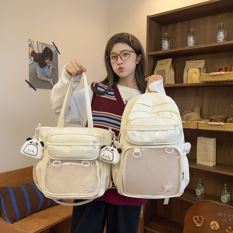2森系大容量カジュアルリュックサック女子学院風軟妹少女睿営透明痛包学生授業書