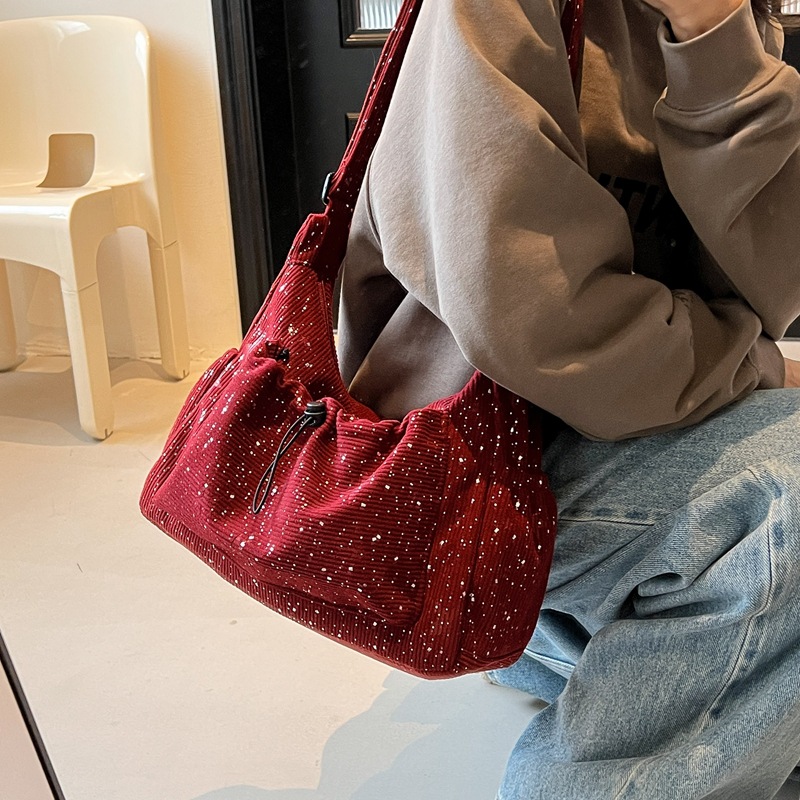 コーデュロイバッグレディース大容量2024新作秋冬百合睿営カジュアルシングルショルダー通勤トートバッグ
