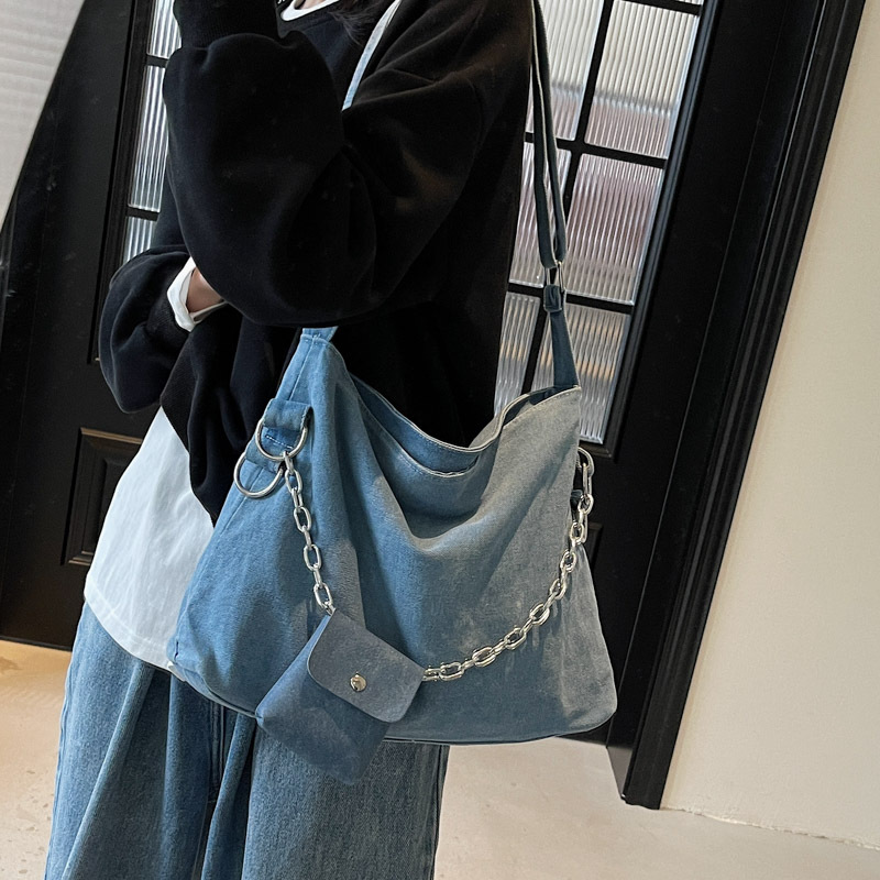 韓国版デニムバッグ女性2025新型ファッション大容量シングルショルダーバッグ