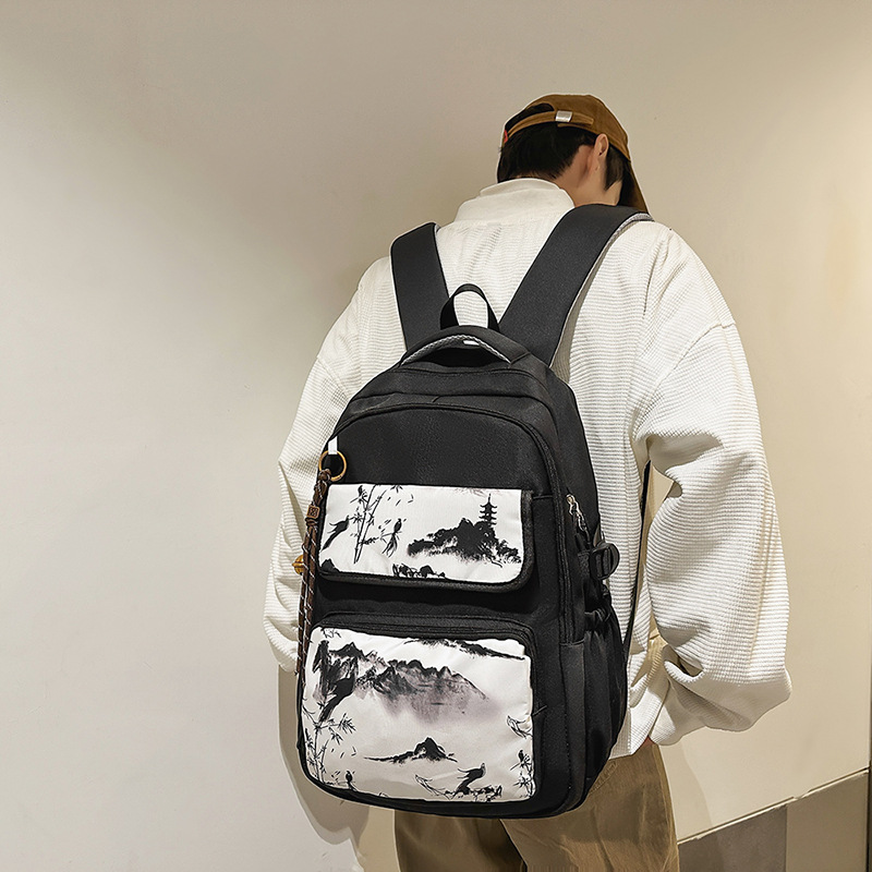 新品カバンレディース水墨画睿営中学高校学生大容量ランドセルins大学生シンプルリュックサック
