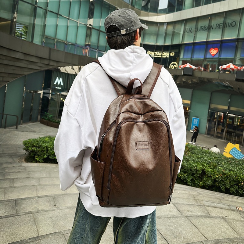 潮クールpu皮質感ランドセル男性大学生カバンとキャンプ通勤短距離旅行防水バックパック男性個性