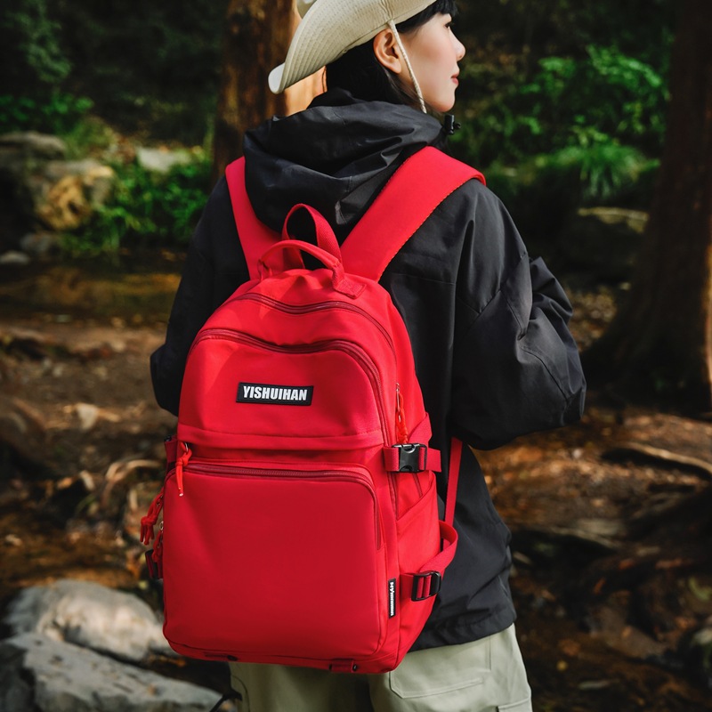 新商品のカバン男初高校大学生カバン純色ins睿営大容量カジュアルリュックサック女子
