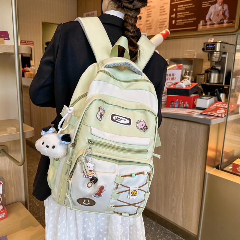 高颜値女子高校生のかばんマカロンが色にぶつかってかわいいとキャンプのランドセル大容量学院風バックパック男