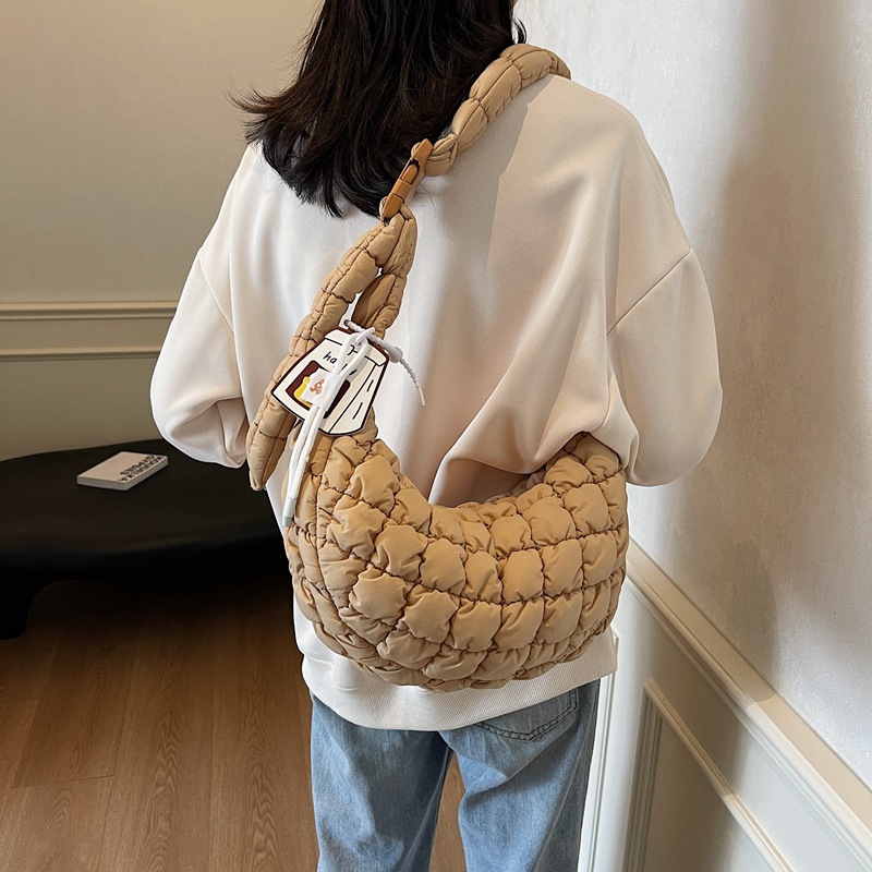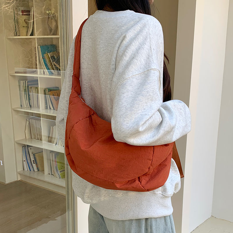 日系シンプル餃子バッグins工装風斜めショルダーバッグ女性通勤とキャンプ運動シングルショルダーバッグ軽やかナイロンバッグ