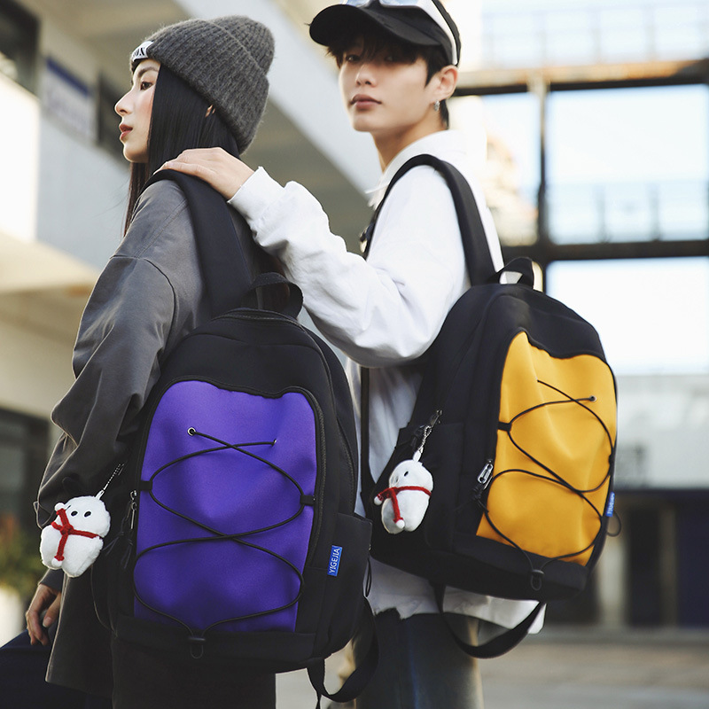 かばん女子2024韓国版カップルの新型大容量純色とキャンプの両肩バックのファッションバッグ小学生の中高生