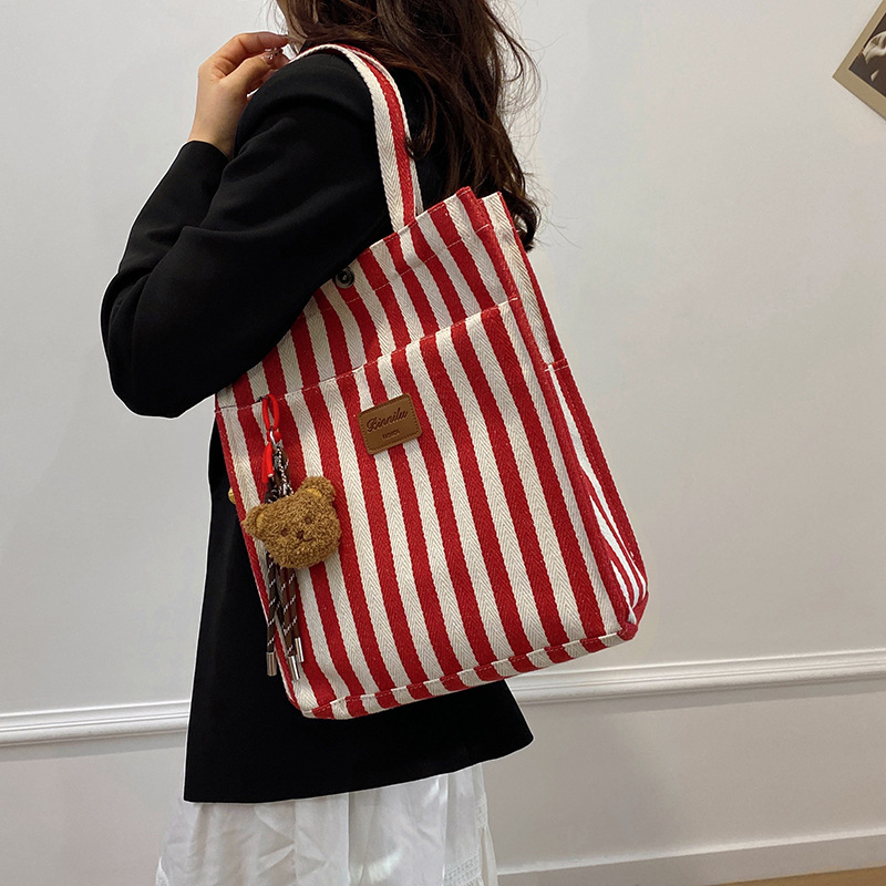 卸売り通勤大容量ストライプバッグ女性2024新型韓系睿営キャンバスバッグファッションシングルショルダーバッグ