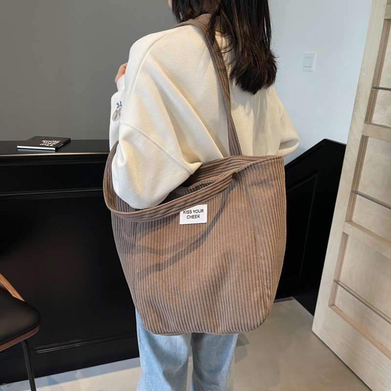 コーデュロイ大容量バッグレディース2023新作ファッション秋冬睿営シングルショルダーバッグレトロ通勤トートバッグ