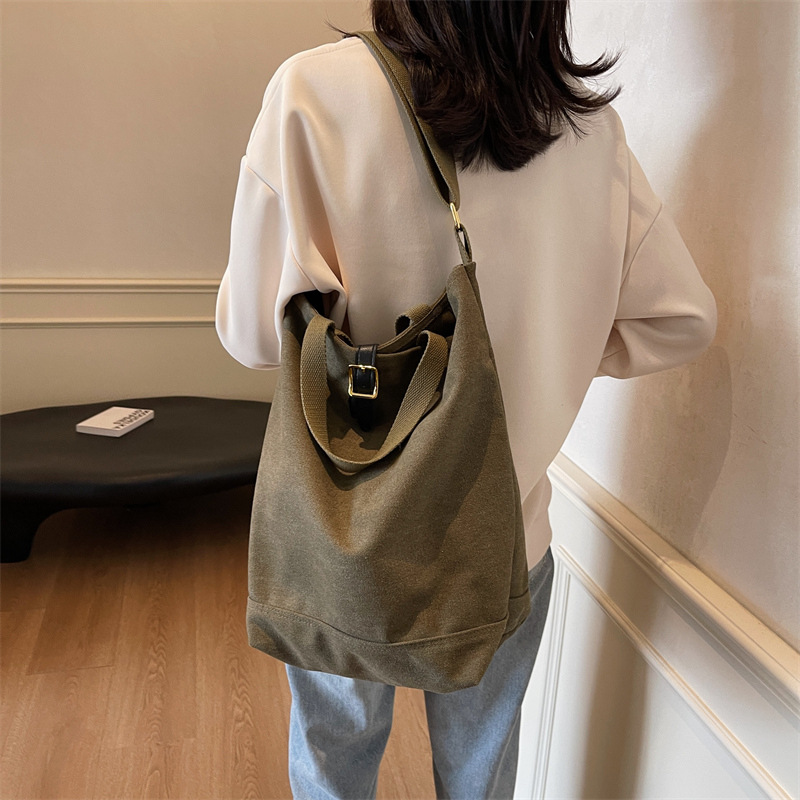 レトロな通勤キャンバスバッグ大容量カジュアルなバッグの質感とキャンプのシンプルなシングル肩の斜め掛けバケツバッグ