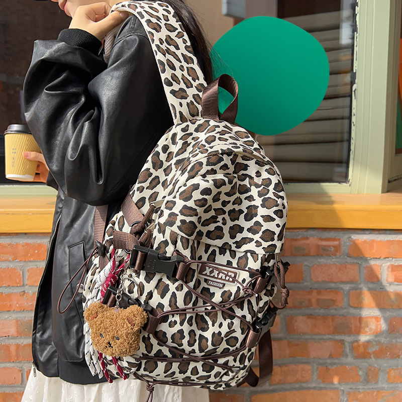 日系insカバン女2024秋冬新作豹柄リュックサック韓国版睿営学生潮大容量リュックサック