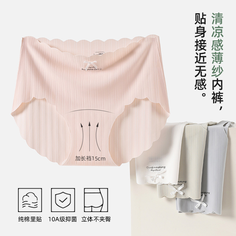 10A抗菌無痕氷糸縞女性下着延長綿股間中腰速乾波包尻下着女