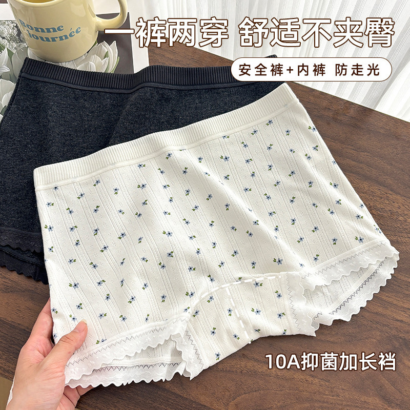 小花柄牧歌的なスタイルの女性用安全ボクサーブリーフ露出防止ツーインワンエクストラロングクロッチ下着女性用クラスAベビーコットン