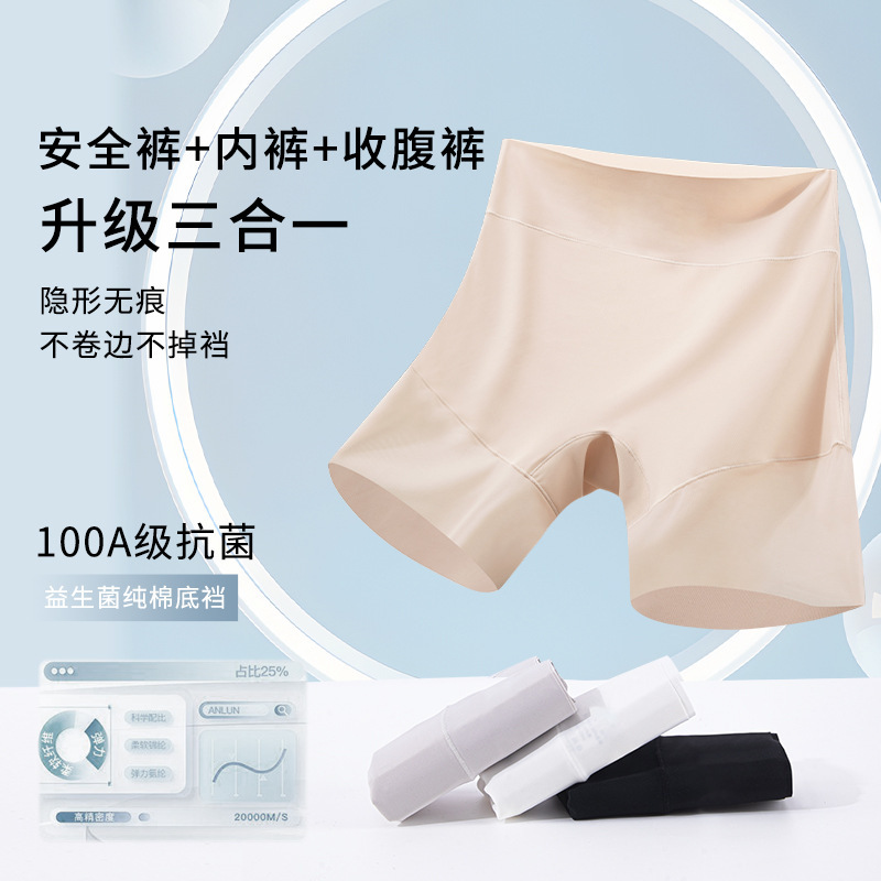女性用ハイウエストシームレスボクサーベリーボトムパンツ、ミッドウエスト安全パンツ、スリーインワン露出防止、抗菌ボトムボクサーブリーフ