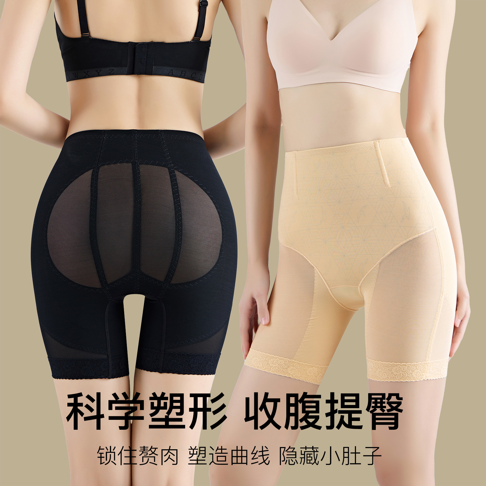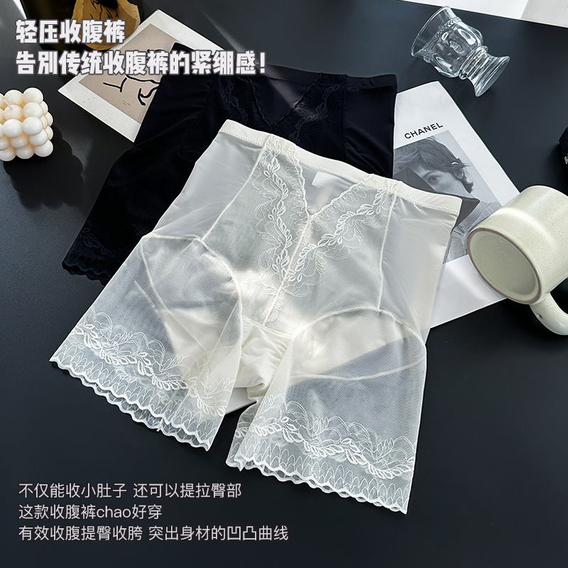 夏用シームレスハイウエストヒップリフティングとお腹引き締め安全パンツ、女性用メッシュ通気性アイスシルク下着、露出防止スリーインワンベース