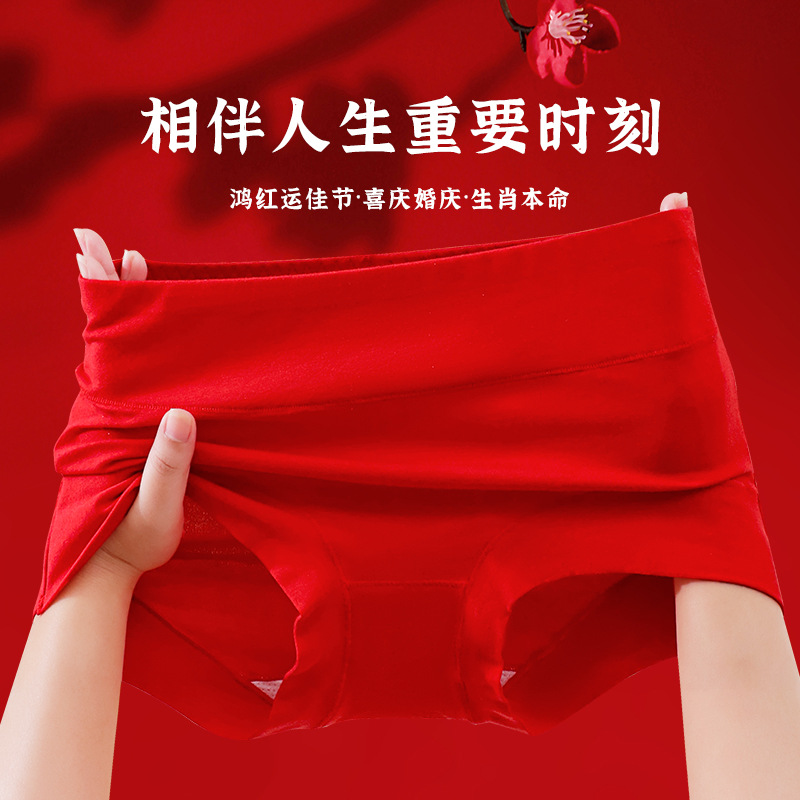 新疆長絨毛綿大紅高腰結腹下着本命年おめでたい純綿下着綿レディース下着60本