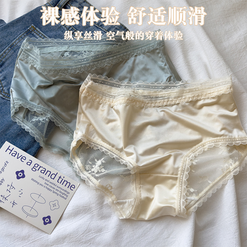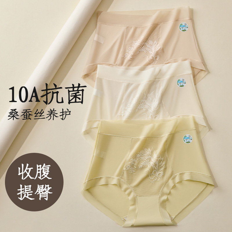 10A抗菌氷糸無痕女性下着高腰ジャカードレース通気大サイズシルク抗菌股三角パンツ