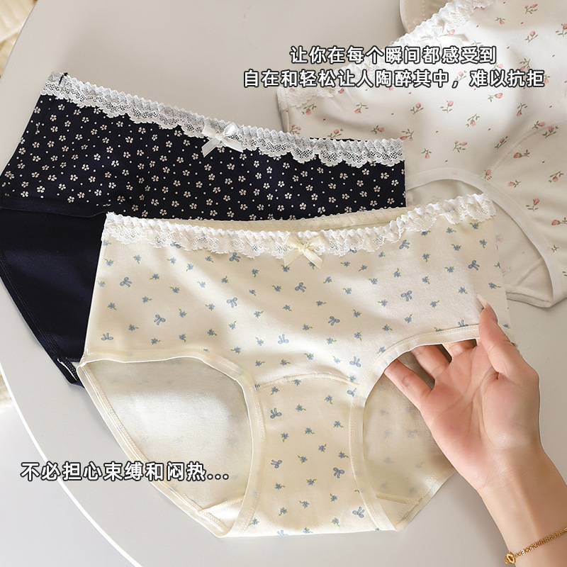 10A 抗菌甘い花柄女性の純綿下着ミッドウエスト延長股間綿快適で通気性のある女性のブリーフ