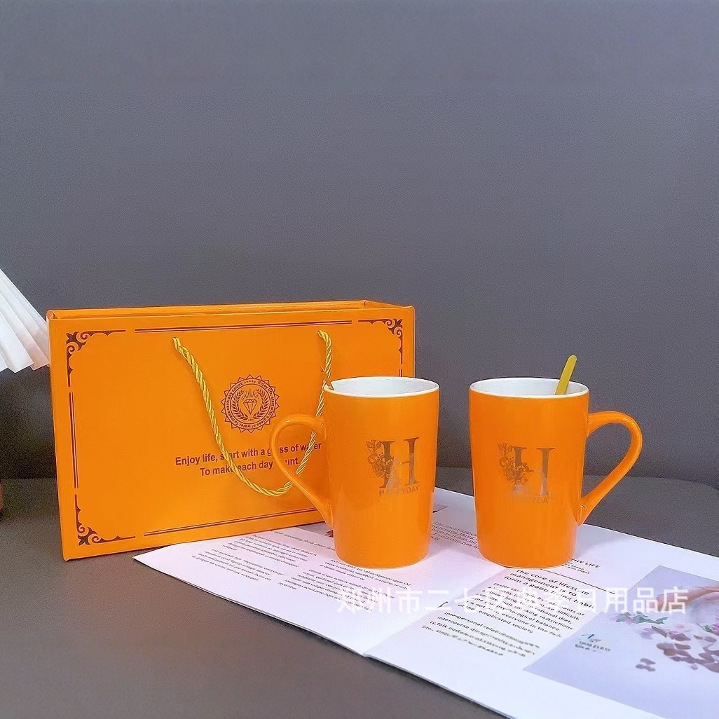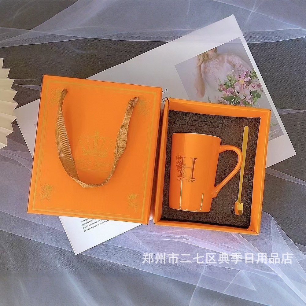 エルメスカップスプーンセット家庭用陶磁器マグカップシンプルコーヒーカップビジネス活動福祉プレゼント卸売り