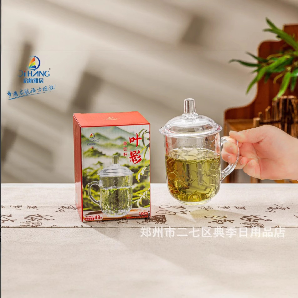 Qihang Yajuyeying ティードリンクカップシングルガラスティーカップ蓋とハンドルオフィスティーカップギフト卸売