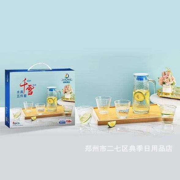 Qihang Yajiu クールサマーウォーターセット 5 点セットクリエイティブ大容量コールドケトルガラスセットビジネスギフト
