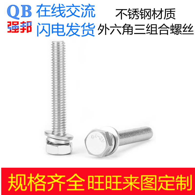 304ステンレス三組み合わせネジ外六角ボルト平弾パッドくぎm 5m 6m 8m 10標準部品締め付け