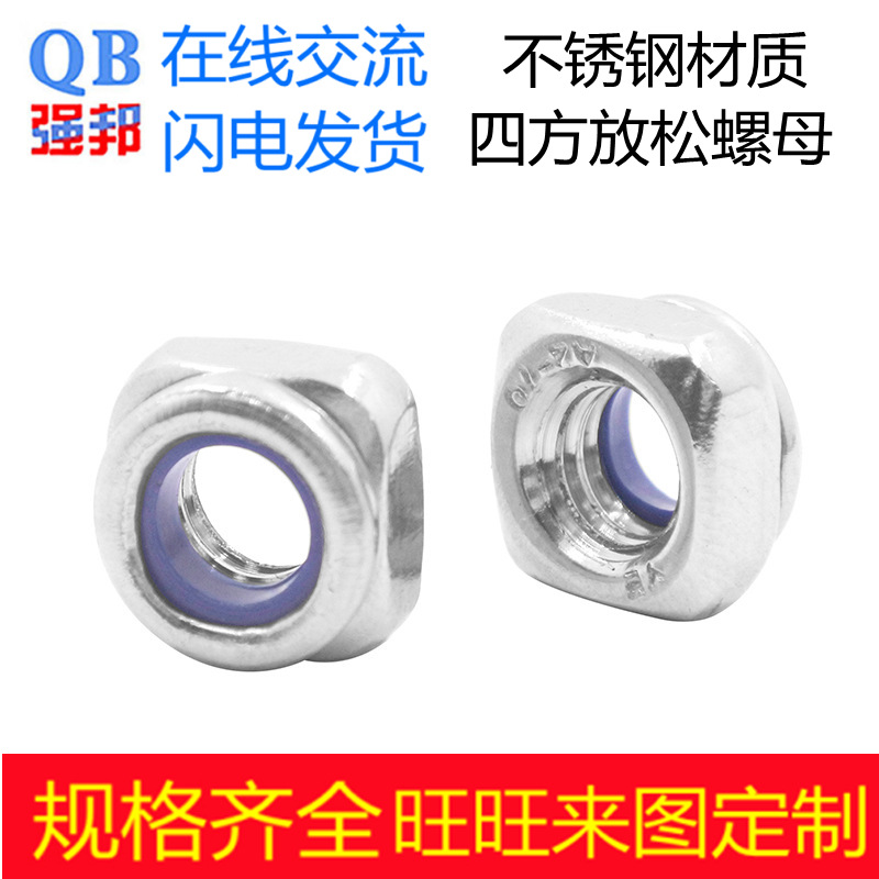 304ステンレス四角ナイロン緩み防止ナット四角ロックナット角型緩み防止ナット四角ナット