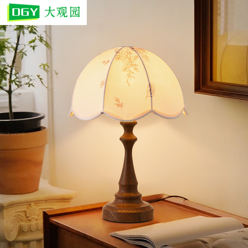 大観園無垢材テーブルランプ レトロ侘び寂び風デスクランプ 寝室ベッドサイド高級装飾テーブルランプ ナイトライト L138