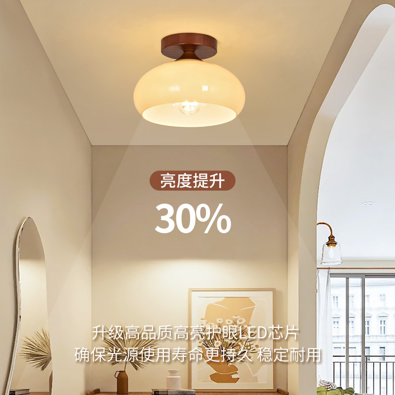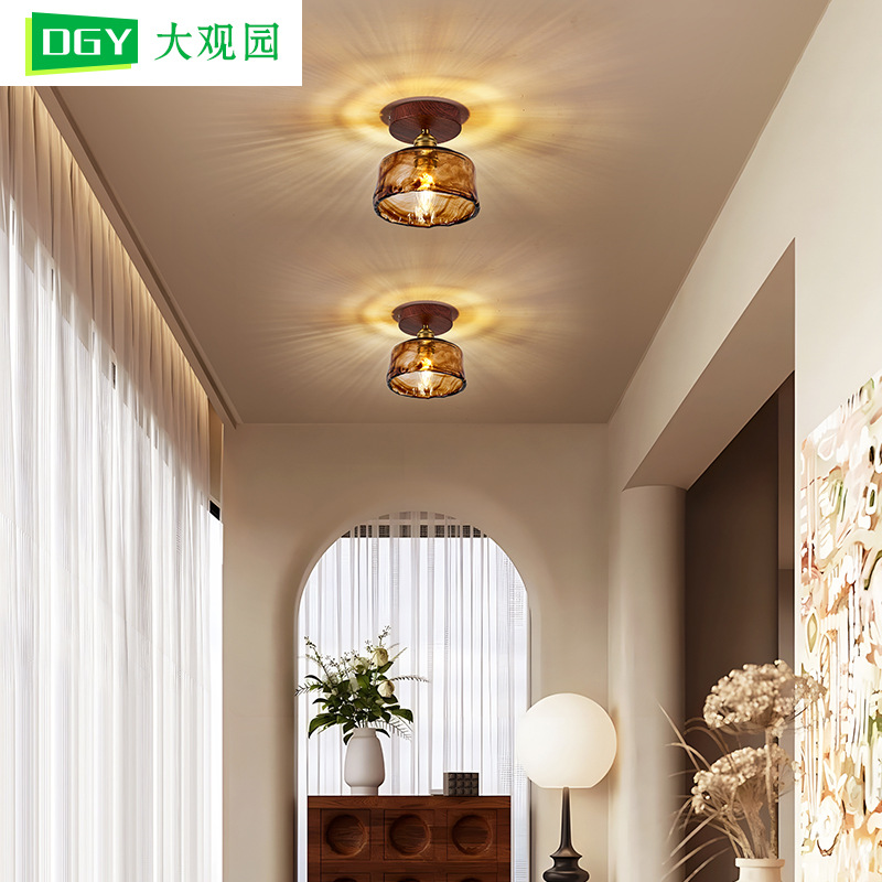 通路廊下シーリングランプ中世侘び寂びスタイルガラスウォールナットカラー玄関ホールライト高級バルコニーランプ668L
