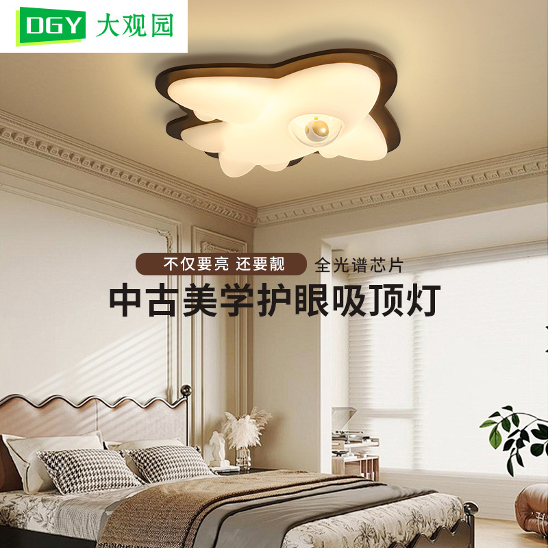 大観園寝室天井照明ルームランプ目の保護レトロアメリカンシンプルウォールナット無垢材寝室子供用ランプL335