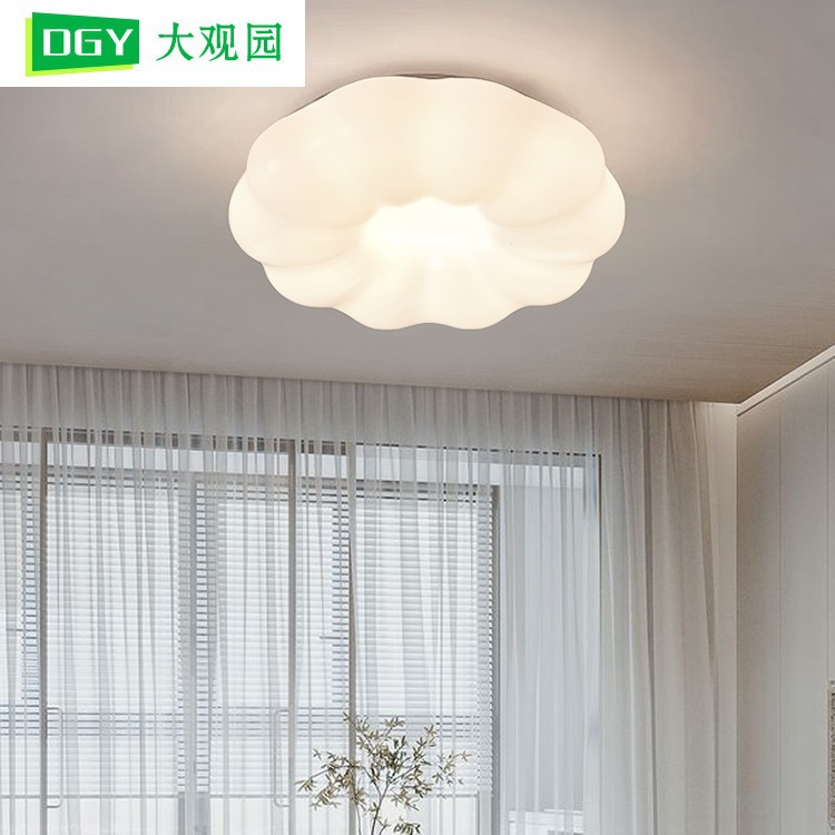 大観園レストラン天井照明 モダンシンプル天井照明 クリーム系書斎寝室天井照明 雲型カボチャ型照明