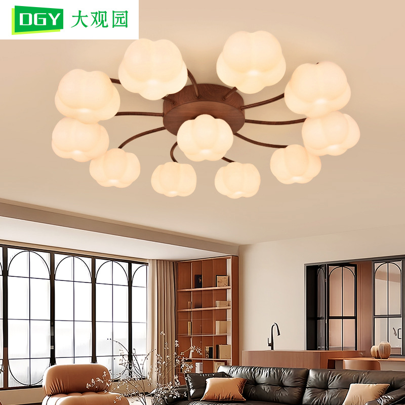 中古リビングルームシーリングランプレトロクリームスタイルウォールナットクラウドチーズフルスペクトル目の保護ホールランプL263