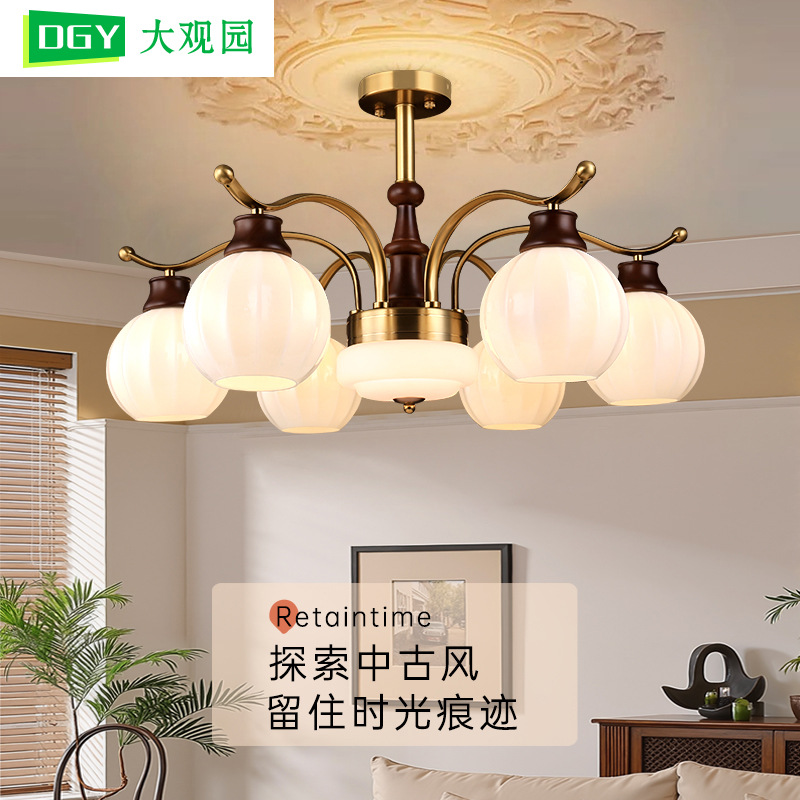 リビングルームランプ新しいレトロコットンランプクリームスタイルクルミメインランプ目の保護シーリングランプ寝室中山ランプ L271