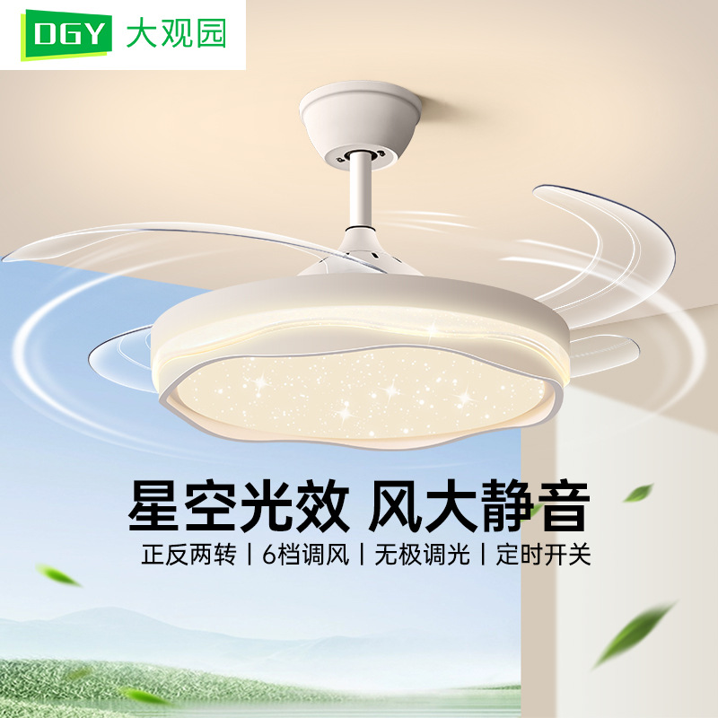 目に見えないファンランプレストランクリームスタイルモダンシンプルな新しいサイレントホーム目の保護マスターベッドルームシーリングファンランプ 696L