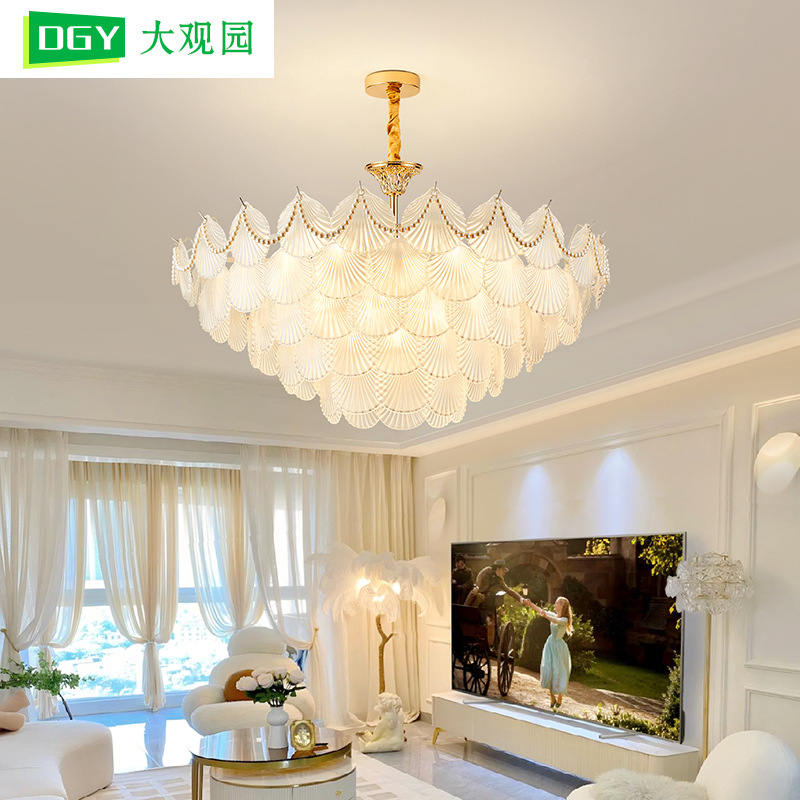 リビングルームのシャンデリアのモダンなシンプルな軽豪華なパールガラス2024年の新型クリーム風寝室レストランのシャンデリア535