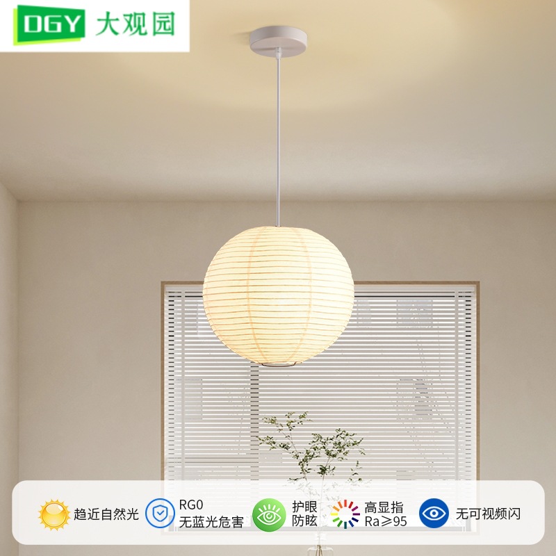 大観園レストラン吊り下げ照明 和風侘寂風 寝室照明 布製ランタン 丸型商業用シングルヘッドダイニングルーム照明 194L