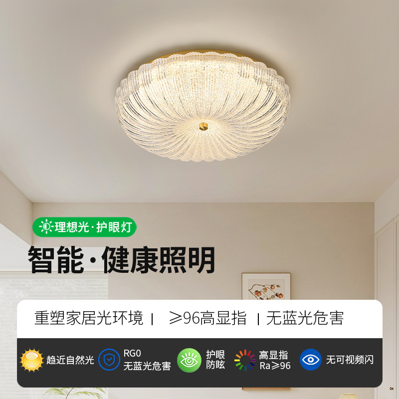新型led保護眼天井灯銅水晶ガラス部屋寝室主臥シンプル書斎カボチャ照明器具