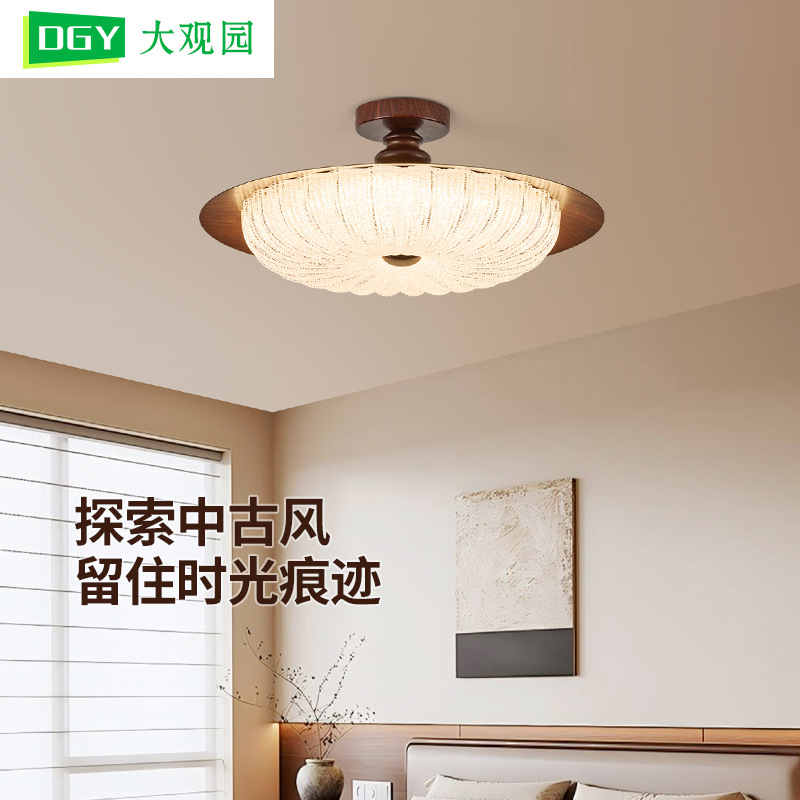 Daguan Yuan 寝室ランプ 2025 新しいレトロアメリカンウォールナット色ランプ中世スタイルの寝室の天井ランプ 357L