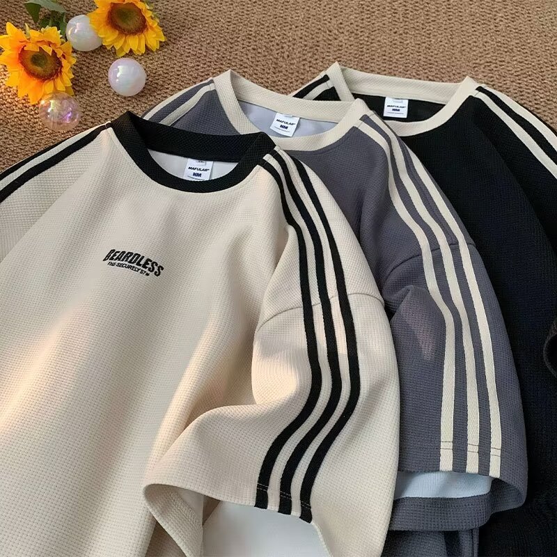 直供対外貿易2024アメリカ式復古衝突色肩半袖tシャツ男夏ゆるい復古香港風上着
