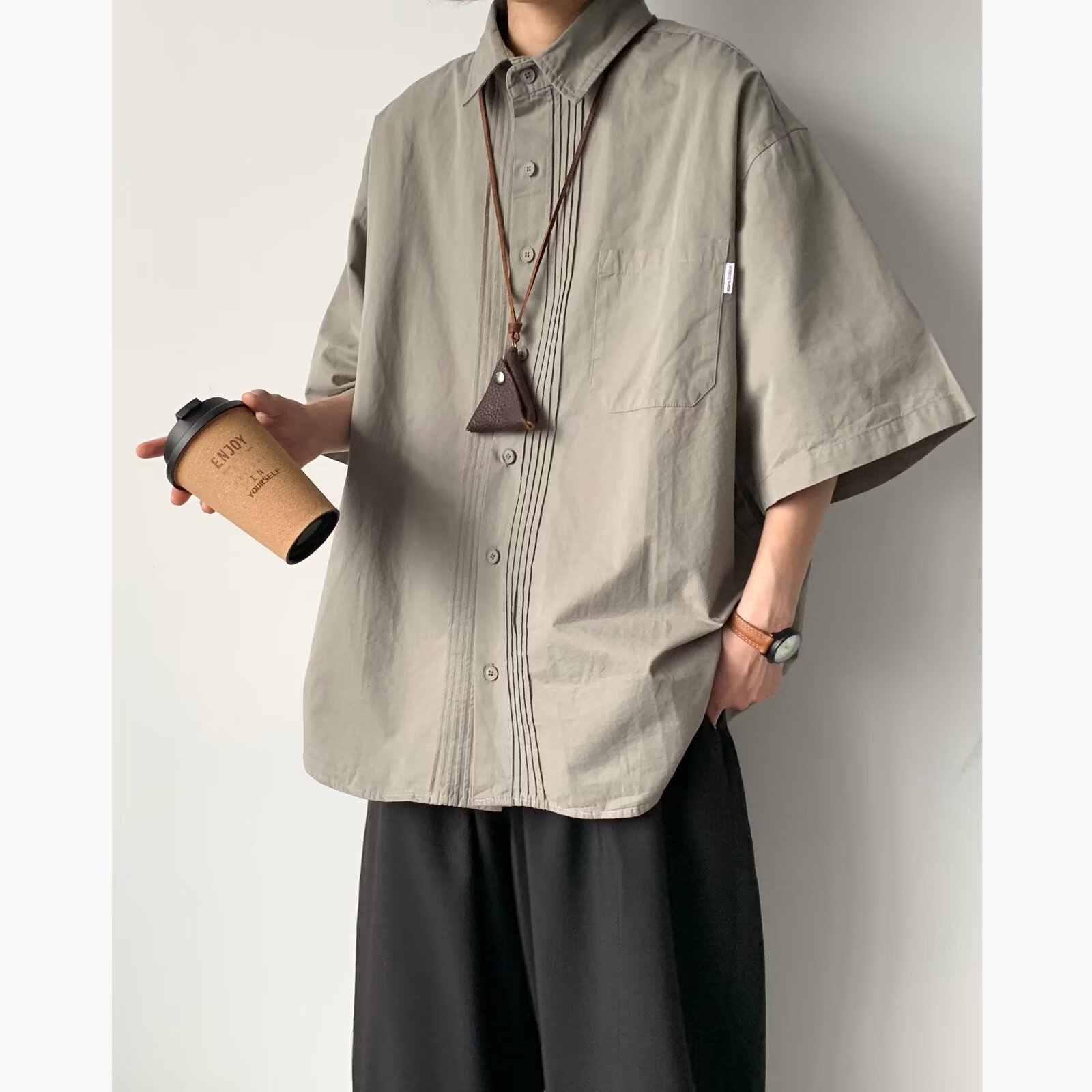 日系レトロcity boy夏工装ポケット半袖シャツ男性百合襟カジュアル半袖シャツ