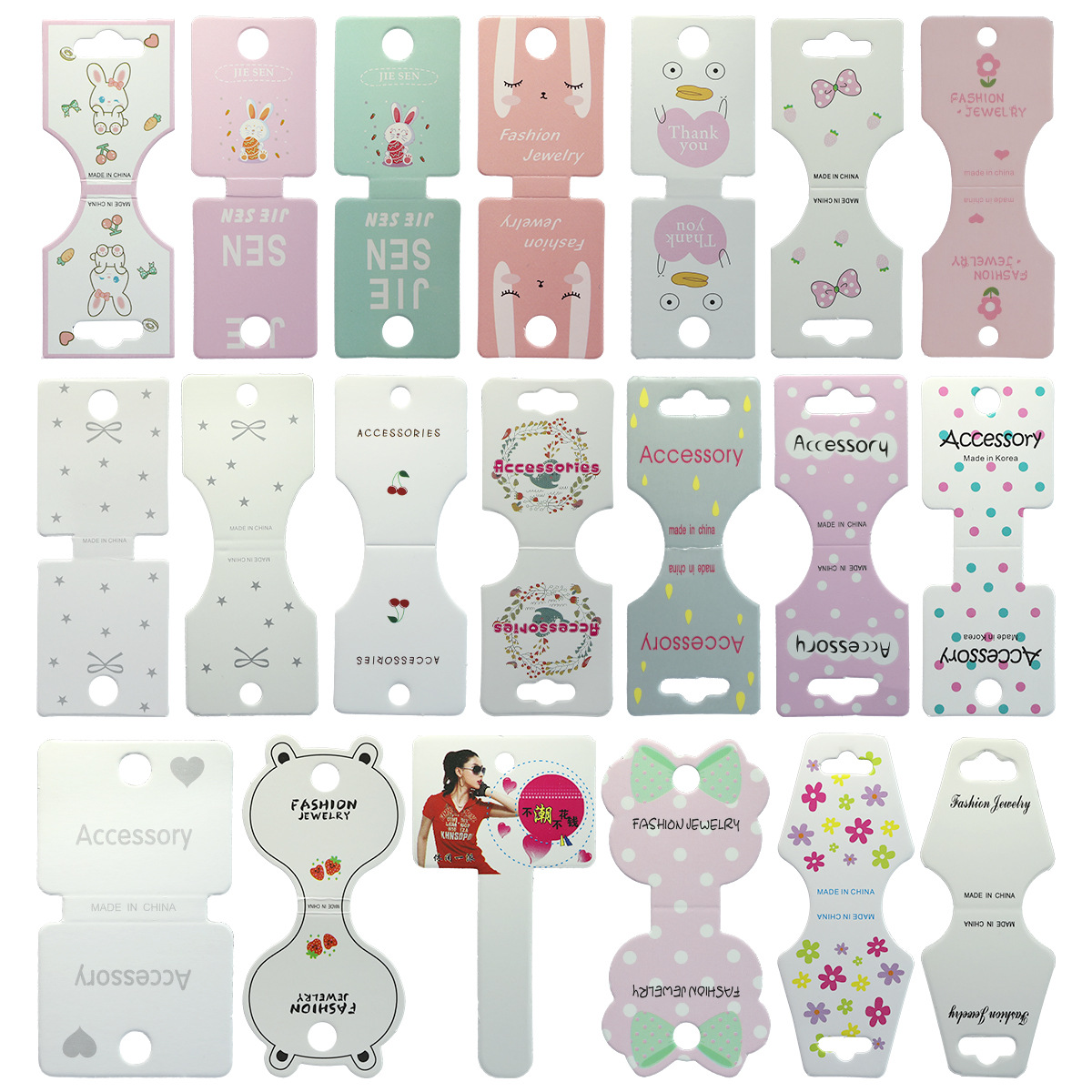 100枚メーカーdiy髪飾り紙髪ひも髪輪吊り下げブランドネックレスカードヘッドアクセサリー包装二つ折り白色カード