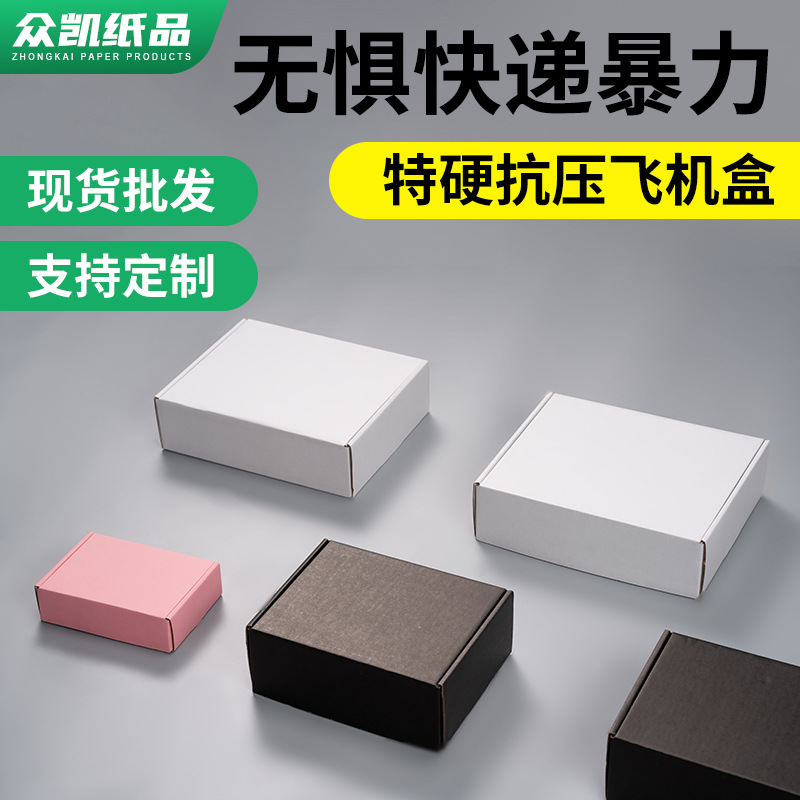 特硬カラー飛行機箱卸売り宅配便専用包装紙箱白黒段ボール正方形小ロット紙箱