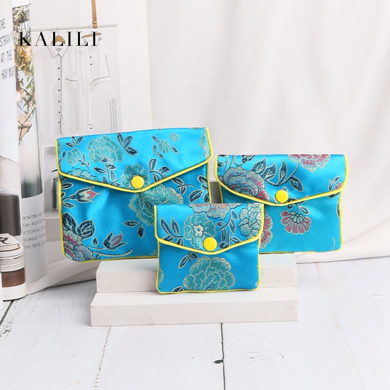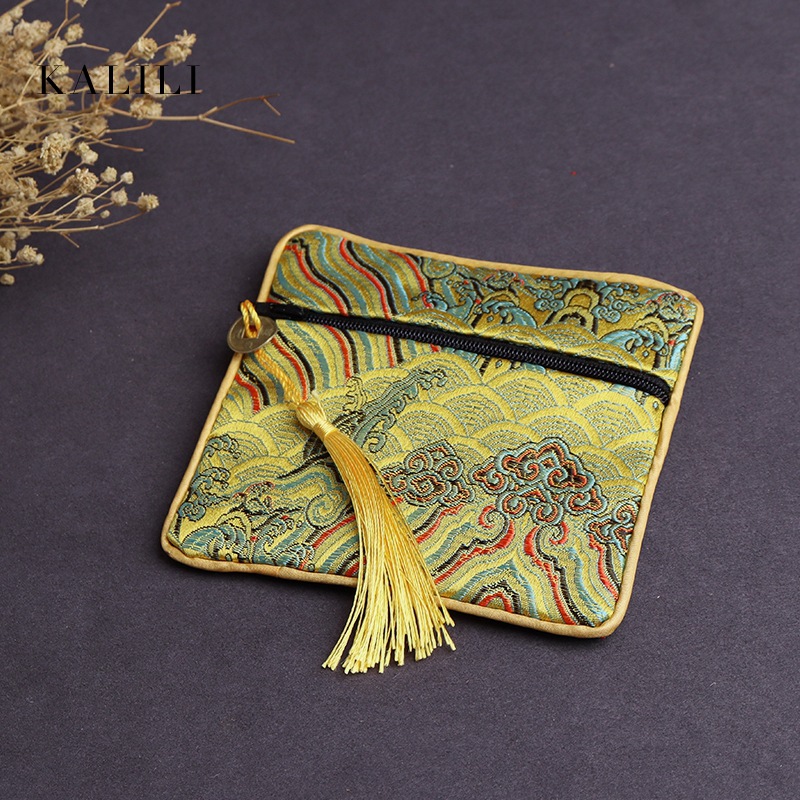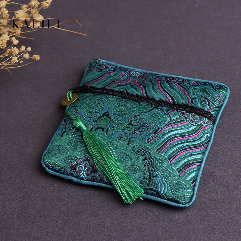 シンプルなジッパー文遊び収納袋波花包装袋鍛造布ブレスレット収納袋アクセサリー袋レトロ香袋