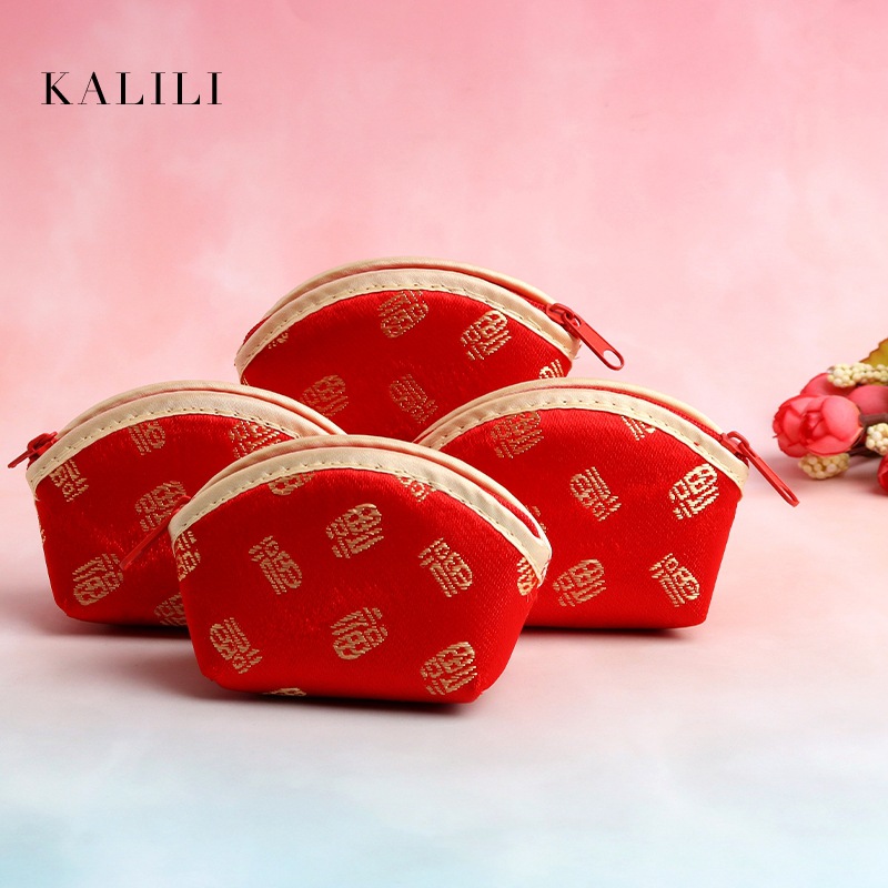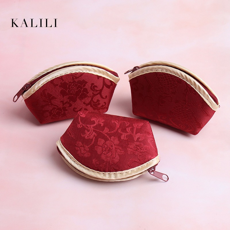 ジュエリーマネー収納袋ジッパージュエリー包装袋赤い祝福餃子バッグブロケード二層ギフトバッグ