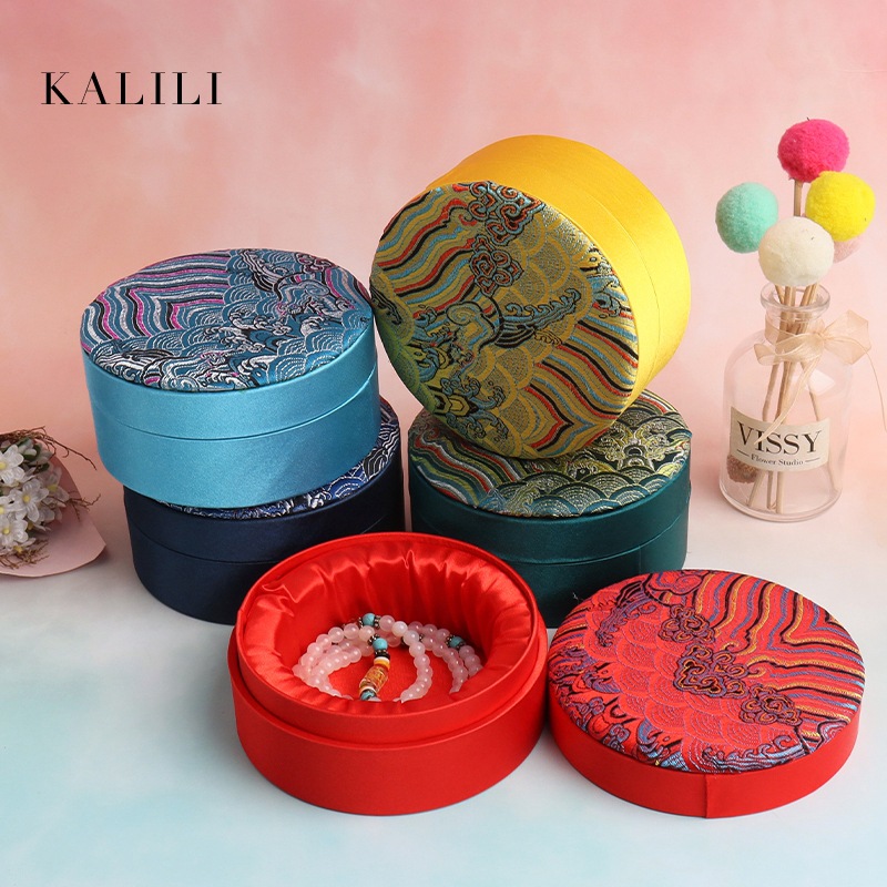 古典的なレトロ円形ジュエリー包装箱ギフトボックスブレスレット手串収納箱波紋錦箱天地蓋